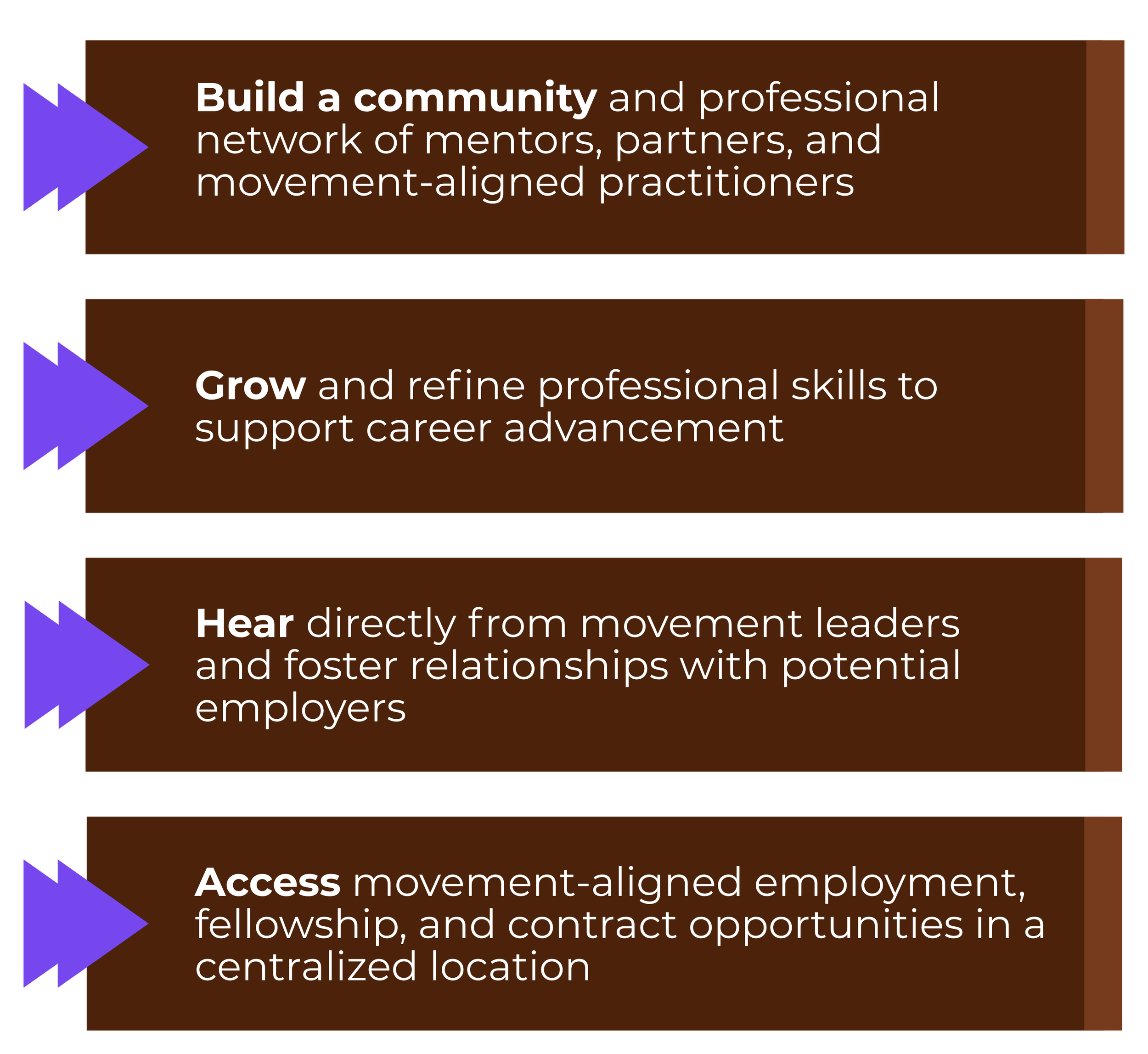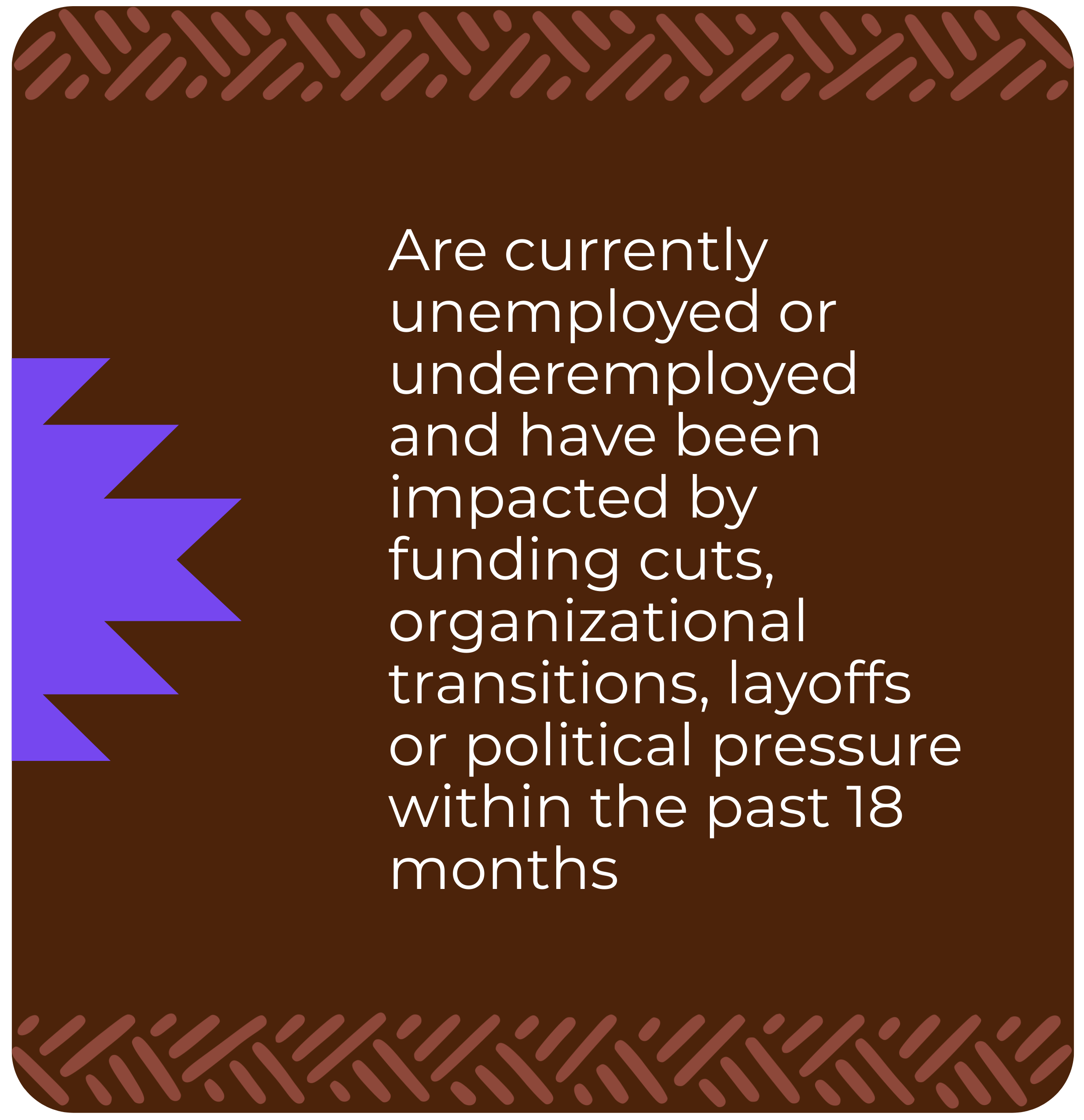 We offer no-cost support to this movement-aligned workforce who are seeking opportunities as they navigate transition and explore ways to continue contributing to this vital work.
